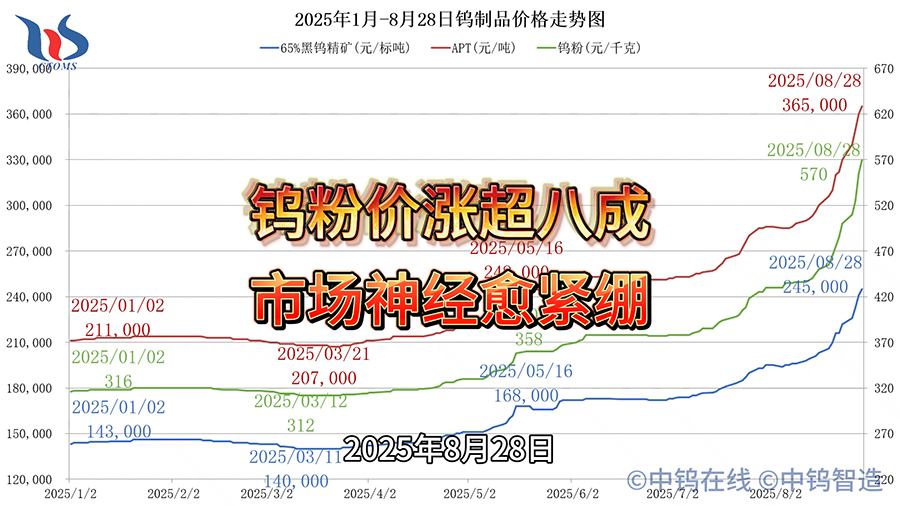 2025年1月-8月28日鎢制品價格走勢 作者: zhenghua 發布日期: 2025年8月29日 34 2025年1月-8月28日鎢制品價格走勢 如您對相關產品感興趣或想銷售您的產品,請聯系我們: Please leave this field empty.